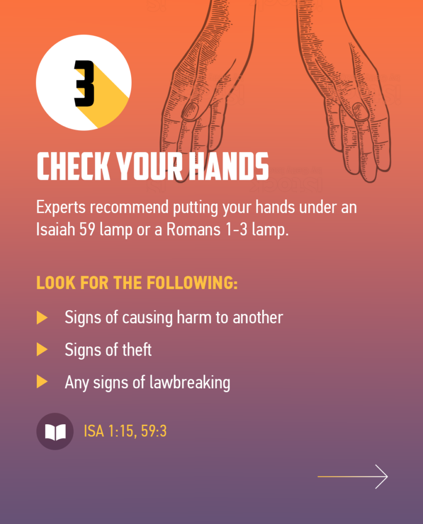 Some experts recommend putting your hands under an Isaiah 59 lamp, and others recommend trying Romans 1-3. Either lamp should provide sufficient light to help you identify the deadly Sinoravirus.