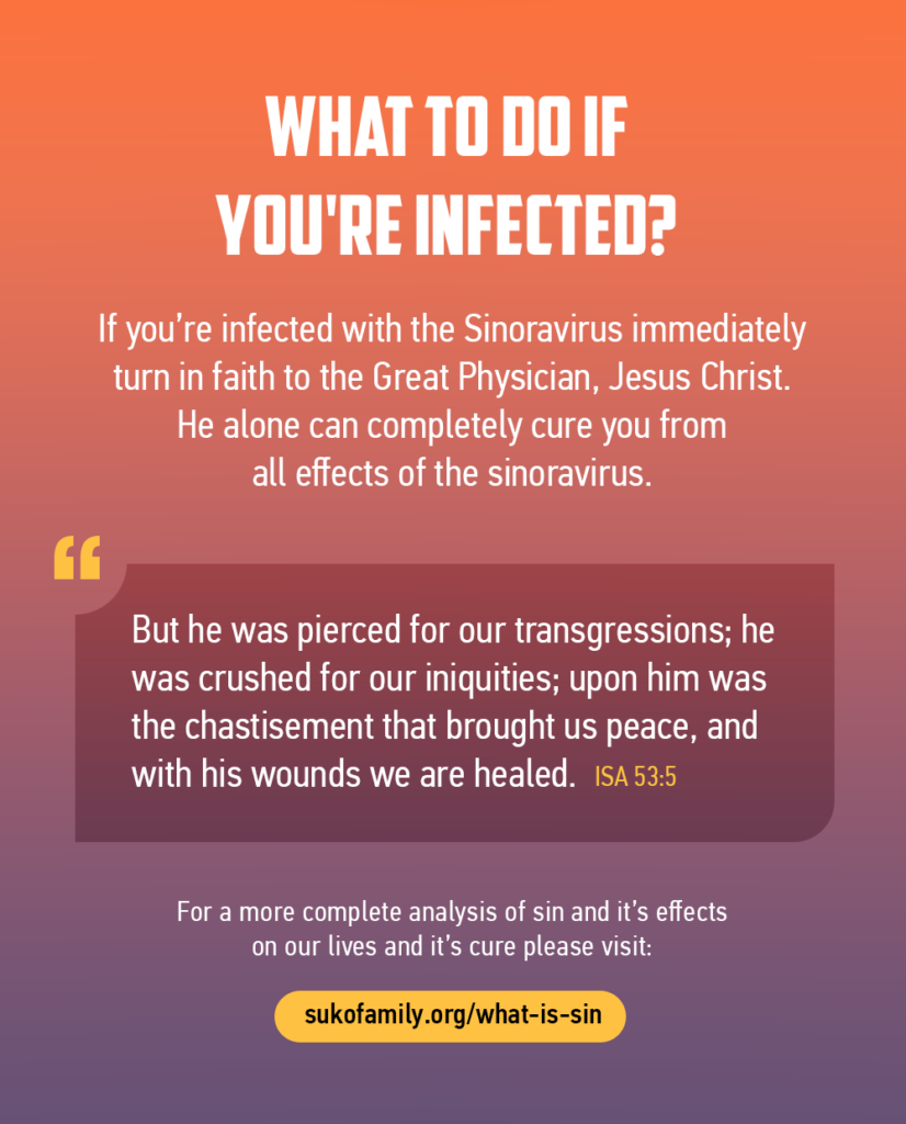The Sinoravirus always ends in death, but the real problem is that this virus is so sinister that it doesn’t simply stop there. This virus has found some way to attach itself to man’s soul. Thus, after physical death, the virus does its greatest damage condemning man’s soul to eternal suffering.