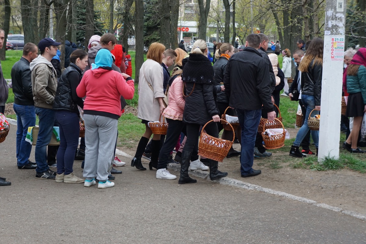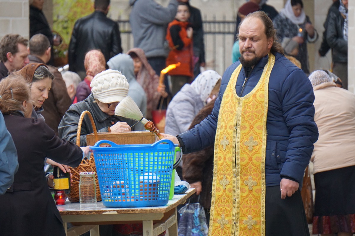 One important aspect of Orthodox tradition is bringing the “Blessed Flame” from Jerusalem to all the Orthodox Churches in the Slavic world. This flame is said to miraculously appear in Jesus’ tomb on Easter morning. The flame is also said to miraculously not burn a person’s skin and that is why you often see people waving their hands through it. Those who attend the Easter services usually purchase a candle which is lit by the blessed flame and then brought home in order to bless their home.
