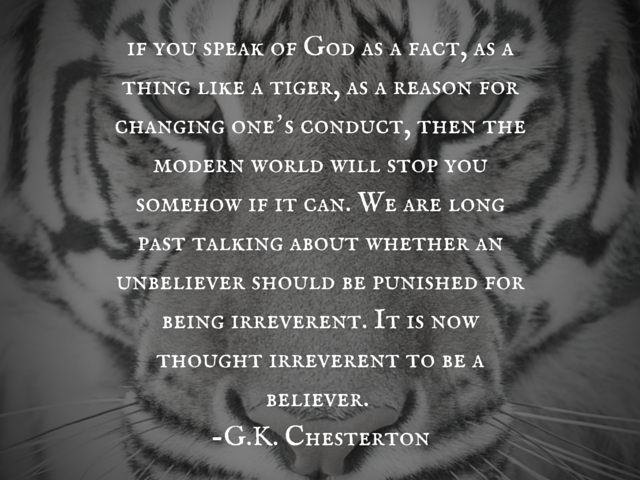 But if you speak of God as a fact, as a thing like a tiger, as a reason for changing one’s conduct, then the modern world will stop you somehow if it can.