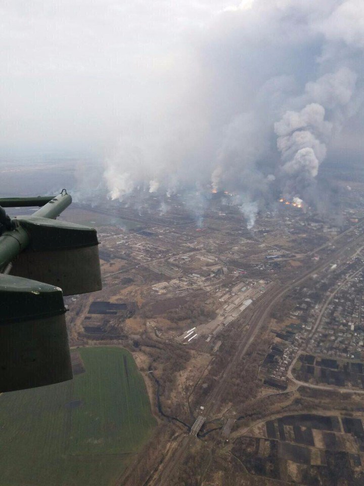 Ariel view of burning ammunitions in Balakleya