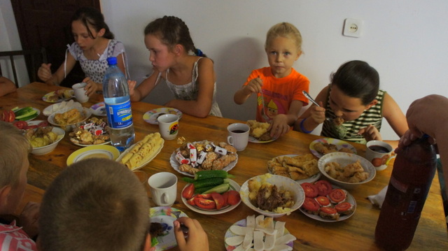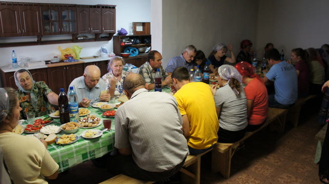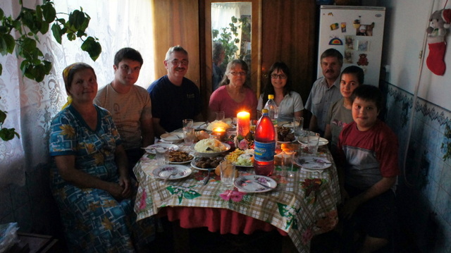 As we drove the temperature was near 100f and we don’t have A/C in our van, thankfully we ran into a thunder-storm with lightning and rain as we got close to the village. Pastor Volodya and his family welcomed us although their power was out due to lightning storm we still enjoyed a wonderful meal together.