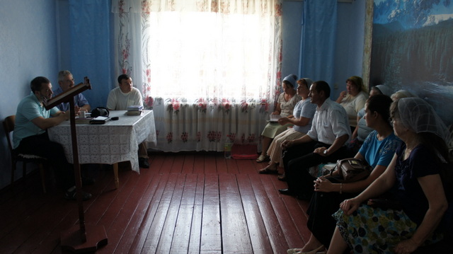 At 2:30 we headed out for the nearby village of Sahanskoe. The small church there meets in the house were the church leader lives. Again I preached, my mom gave a testimony and then my dad preached. After the service the people lingered for a long time and asked many questions. It was pleasant to see how much they enjoyed the fellowship and just the fact that we took the time to visit them in their village.